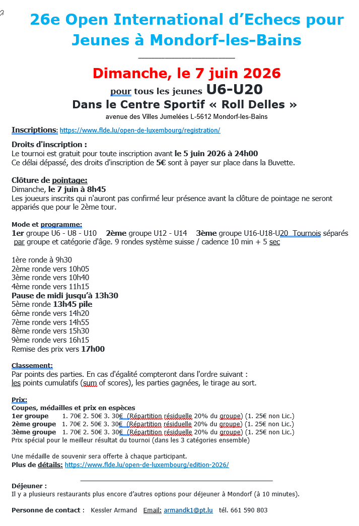 02.05.2026 - Championnat Individuel Blitz - Schifflange