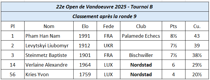 | 1 | Pham Han Nam | FRA | 8,5 / 9 |